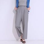 パンツ→タック入りで腰回りゆったりと感じます。センタープレス入りでお仕事にもおすすめです。
