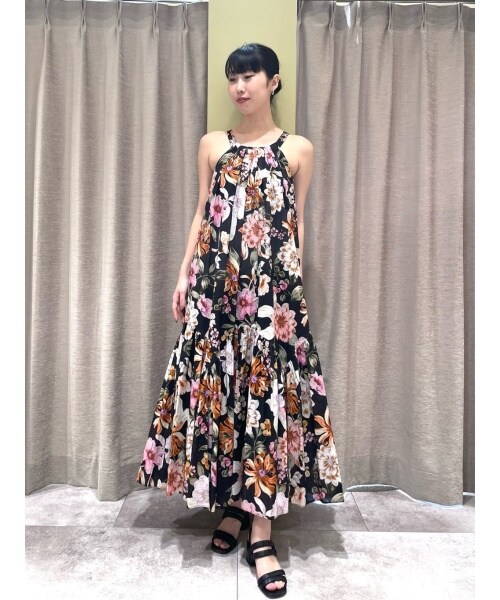コットン100%の生地にリゾート感のある華やかなフラワープリントのロングドレス。女性らしい華奢さを感じられる、アメスリキャミタイプの旬なデザインも魅力です!
