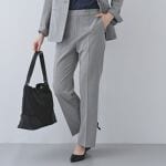 ベーシックなデザインのニットはスーツのインナーにも!すっきり着て頂けるので着回し力抜群です!ミニ千鳥柄のストレートパンツは伸縮性があり着心地も良く、ストレートのラインで綺麗に履いて頂けるシルエット。セットアップでも!