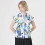 着るだけで華やかになるトップスを、ブラックのプリーツスカートで大人っぽく! スキッパータイプなので骨格ストレートの方も抜け感が出せるおすすめの一着!