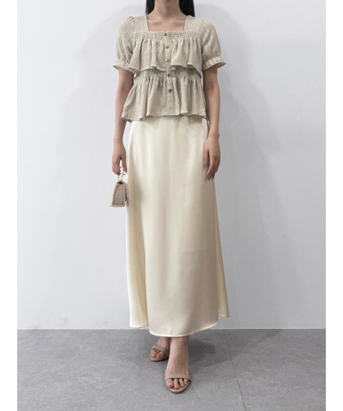 SKIRT:long着用 フェミニンなティアードブラウスに、上品なフレアーマーメイドスカートを合わせた大人可愛いスタイル。コーデを華やかに仕上げてくれます。