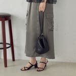 トップスにボリュームがあるのでボトムは黒スキニーで抑えめにしました