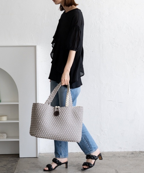 【Bag】横長フォルムでたっぷり大容量なメッシュトートバッグです。