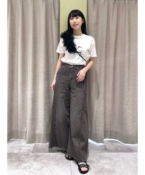 アーティスト ヨシダエリ氏との'25 SUMMER コラボレーション。型崩れしにくく肌触りも心地よい為、夏の汗ばむ季節にも着やすいのも魅力です。 パンツスタイルだけでなくフレアスカートにイン&ブラウジングしたりと女性らしいスタイリングも楽しめる一着です。