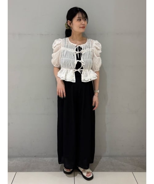 【トップス】 前後2way! シャーリングデザインがかわいい、、 肩や二の腕もカバーしつつ ふんわり感を残しており女性らしさ満点のブラウス!
