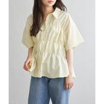 【トップス】たっぷりとギャザーを寄せたシャーリングデザインが映えるシャツ。シンプルな半袖シャツに立体感と動きを加えたデザインは、一枚でスタイリングが完成する主役トップスです。