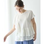 【着用サイズ ブラウス:F パンツ:M】滑らかな肌触りの素材でブラウスの様に着られるコットン混カットソー。ペプラムラインがさり気なく体型をカバーしてくれます。
