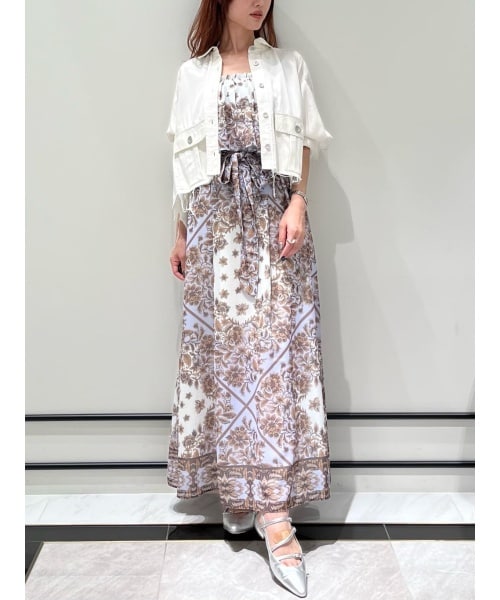 サラサラとしたポリエステルのシフォン素材に、パターンに合わせて組んだオリジナルのフラワー柄をのせた女性らしいワンピース。ラベンダーとブラウンの大人な配色が珍しく、秋口にかけてレザーアイテムと合わせたコーディネートも素敵です。