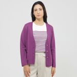 ミラノリブ編みのカーディガン感覚で羽織れるニットジャケットです。ニットの柔らかさがありつつ、ノーカラージャケットのきちんと感も兼ね備えた一着です。コンパクトなサイズ感とすっきりとしたVラインできれいなシルエットをつくりだします。