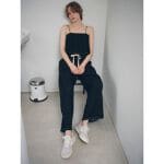 小物でカラーを取り入れたのがコーデのポイント.ウエストリボンがポイントでビスチェは綺麗にフレアなのと短丈でスタイルアップできちゃうsetup!