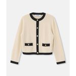 ネックラインやフロント、ポケット口、袖口のバイカラー切り替えがオシャレなデザイン。羽織としてはもちろん、フロントボタンを留めてプルオーバーとして着ていただいても、ボトムスを選ばずお召しになれるバランスの丁度いいカーディガンです。