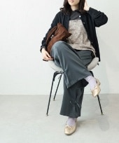 ゆるっと着られる大人可愛いネイビーブラウスは、すっきりVネックで華奢見え。ワイドデニムパンツを合わせることで、甘すぎないカジュアルな印象に。リラックス感とスタイルアップを両立した、夏のお出かけにぴったりのコーデです。