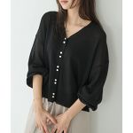 ダブルパールボタンがアクセントになった華やかなデザイン。ほんのりと透け感のあるシアー生地で、程よい大人の肌見せが叶います。ややボリュームを持たせたスリーブデザインもポイントです。
