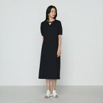 フロントのデザインキーネックが顔周りをすっきりと見せてくれる、ジャージーワンピースです。
