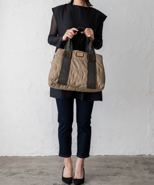 【BAG】綿入りナイロンでもこもことした可愛い3スペーストートバッグ。