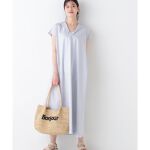 分量が多いワンピースですがとても軽く足さばきがしやすいアイテムです。 座っていてもシワになりにくいです。 身長150センチでくるぶしまでの長さです。 ポケットもついて軽やかなワンピースなので夏のご旅行などに最適です。