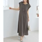 ノースリーブの着こなしが難しいと感じる方にもおすすめな肩先を覆う長さのスリーブデザイン。アームホールの内側にマチが付いているので、中が見えにくいのも嬉しいポイントです。カット素材ですが、バックネックに施したバックルとたらしベルトが抜け感のある洗練されたな印象に仕上げてくれます。