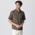 ポリウレタン混の綿素材を使用した、リゾート感のある印象ていな半袖シャツです。素材表面の凹凸感が肌離れをよく、ストレッチ素材のため暑い時期におすすめの半袖シャツです。
