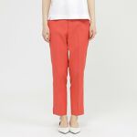 オレンジカラーが華を添えるスティックパンツ。後ろウエストはゴム仕様では着心地の良さも叶えます。ジャケットやニット、ブラウスなど様々なトップスに合わせやすく、すっきりとしたコーディネートに仕上がる一着です。