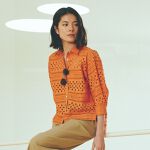 軽く羽織れるショート丈のブラウス。後ろは少し長めなので、安心感もある万能アイテムです。後ろの方へボリュームが広がるように、タックの方向や分量を工夫した袖がポイントです。柄部分が透けるので、インナーで色を合わせていただくコーディネートもおすすめです。