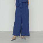シンプルなプルオーバーにリバーシブルプリーツのボトムスを夏らしいカラーで合わせました。スカーフもポイントです。