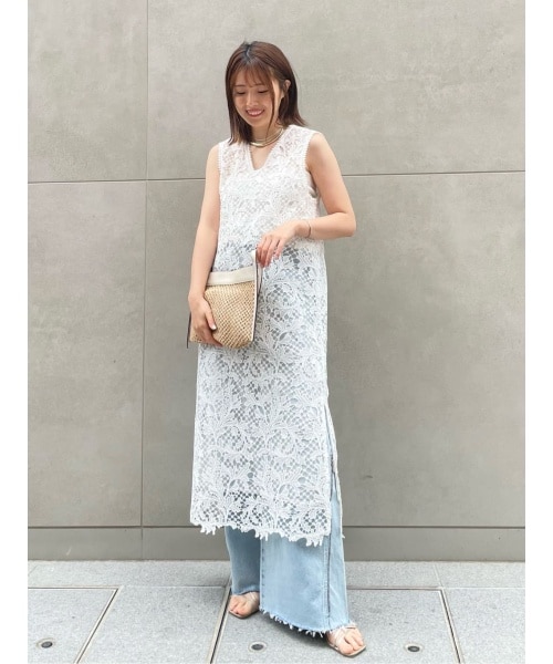 お洒落にレイヤードスタイルを楽しめるアイテム。上品なケミカルレースが華やかで綺麗です。ロング丈ですがサイドスリットの抜け感が出て素敵です。