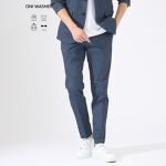 ネイビーのセットアップに白Tシャツが映え、軽やかなで清潔感のある夏コーデ。