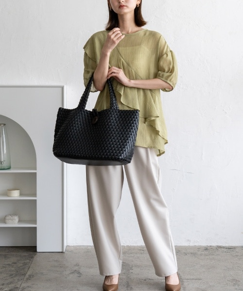 【Bag】横長フォルムでたっぷり大容量なメッシュトートバッグです。
