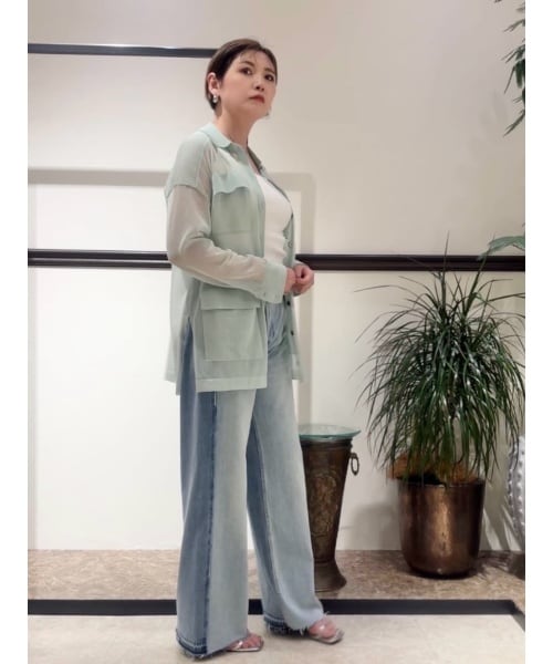 上品な光沢感があるハイゲージのニットシャツです。シャツカラーに大きめのポケットを4つ付けたカバーオールジャケットのようなデザイン。シアーな透け感が美しく着るだけで涼しげなコーディネートになります。ゆったりとした抜け感が出せるオーバーサイズシルエットです。