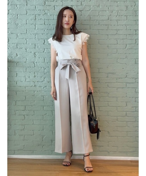 袖にあしらわれた繊細なレースが、シンプルなノースリーブトップスを一気にフェミニンな印象へ!涼しげで上品な印象が魅力です◎