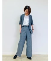 テーパードパンツを合わせてメンズライクな印象にしました。