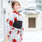 夏を彩るコーディネート済み浴衣セット。初めてでも結びやすい兵児帯(へこおび)は、中に帯板を入れると型崩れしにくく、きれいな着姿がキープできます。【着用サイズ:フリー】