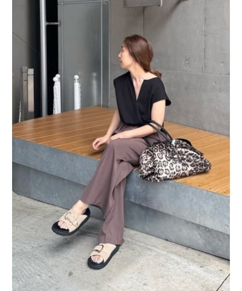 別注ブラウンパンツに綺麗目ブラウスで合わせたハンサムカジュアルコーデ。