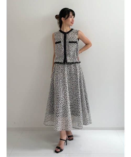 セパレートタイプのドレスです。立体感のある生地ですが軽いので見た目以上に涼しく着ていただけます。トップスは前開き出来るのでベストとしての着用も◎