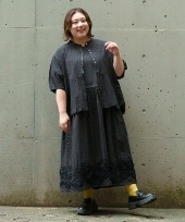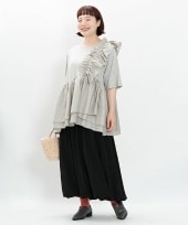 プルオーバーはタックの立体感により、体のラインを拾わないのもうれしいポイント!