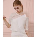 ふんわりとした5部袖ニットは身体のラインを取らないゆったりさとスッキリとした着丈の絶妙なバランスで使い勝手の良いアイテム。