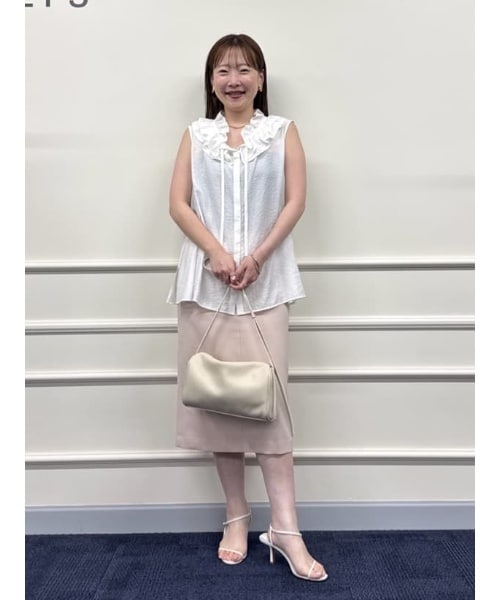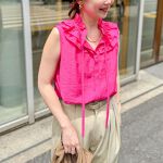 ワントーンでもフリルブラウスでオシャレに