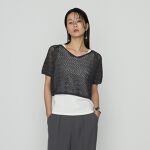 麻のような風合いですが綿100%のニットです。チクチク感も少なくこの季節にさらっとお召しいただけます。