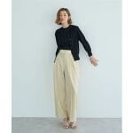 【着用サイズ ブラウス:F パンツ:S】落ち感のある柔らかいジョーゼット生地で仕立てたブラウス。濃色のボウタイが顔周りをスッキリ引き締めてくれます◎