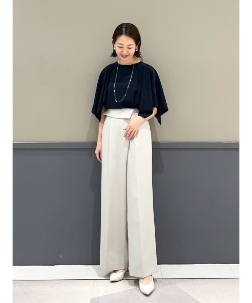 【着用サイズ ブラウス:F パンツ:S】エレガントに揺らめくハンカチヘムスリーブが目を惹くデザインブラウス。二の腕をしっかりとカバーしながら、通気性も良く暑い夏の日でも快適な1着です。