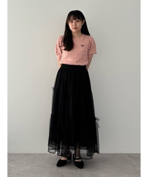 【着用サイズ ニット:F】松本セイジさんが描き下ろした「ミッキー&フレンズ」がデザインされたニットトップスでガーリーコーデです◎