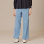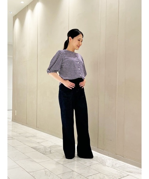 ビビッドなトリコロールが新鮮なチルトプリントのブラウスはシンプルにデニムに合わせて大人カジュアルを演出します。 デニムは麻混の素材に拘った夏使用の涼しく履きやすい一品です。今年らしいワイドシルエットで足長効果も期待できます!