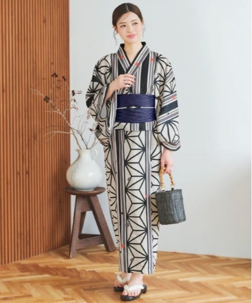 レトロな柄が落ち着いた大人の女性を演出する大人の浴衣コーデ。