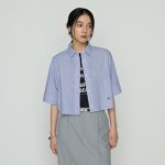 春にご好評いただきましたクロプドシャツの夏バージョンです。 .コムサ定番のリバーシブルスカートと合わせて爽やかカラーのコーディネートです。