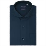 一見、普通のネイビーシャツに見えますがソラーロ(玉虫色)のような生地を使用しているので、光の角度によってオーロラのように帯びて見えるデザインに。