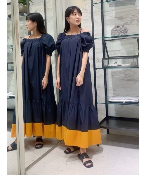 オフショルでもどちらでも着れる2wayのワンピ!ウエストのリボンも付いてるので絞ってキレイめにも着られます?ウエストリボンを外すとゆったりしてるけど肩周り華奢に見えるデザインで着膨れ感はなかったです。