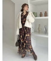 大人気のレーストリムワンピースを薄手のニットと重ねてコーディネートしました