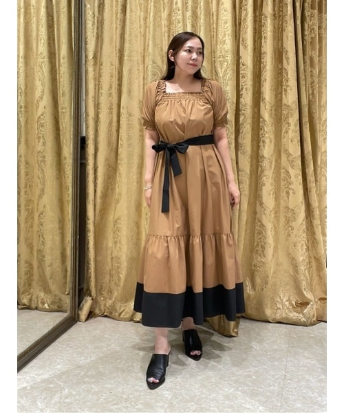 やや肉厚で張り感のあるタイプライター素材を使用し、用尺をたっぷりと取った贅沢な蹴回しが華やかなワンピース。じめじめする時期にもサラッと着れて、テント型のシルエットなので身体にはりつかずに着れます。