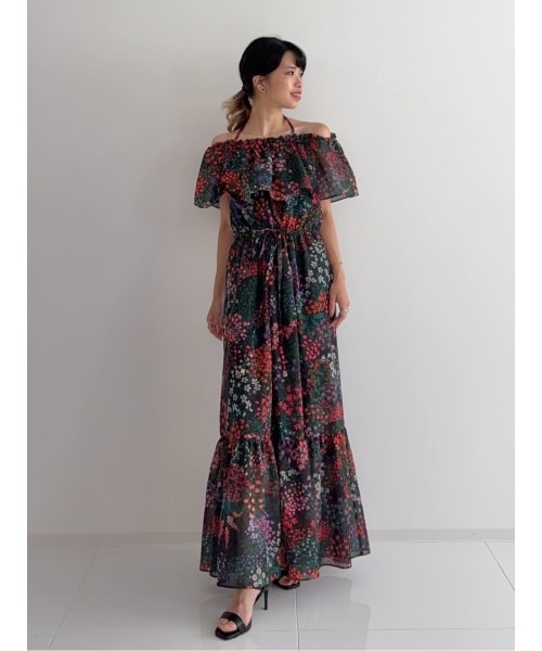 ヴィンテージ感あるボタニカル柄ワンピースです。ポリエステル100%でやや透け感もあり軽い着心地です。ウエストは紐付きなのでゆったりもキュッと締めるのもお好きに調整可能◎夏はオフショルダーで、季節が進んだら肩にかけて暑いシーズンのその先まで長く愛用いただけます。