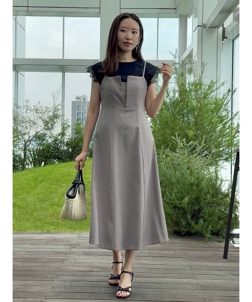 ボディラインを拾いすぎないセミフレアシルエットが大人の余裕を感じさせる一着。シックな色合わせで甘さを引き算し、都会的な雰囲気に仕上げています♪